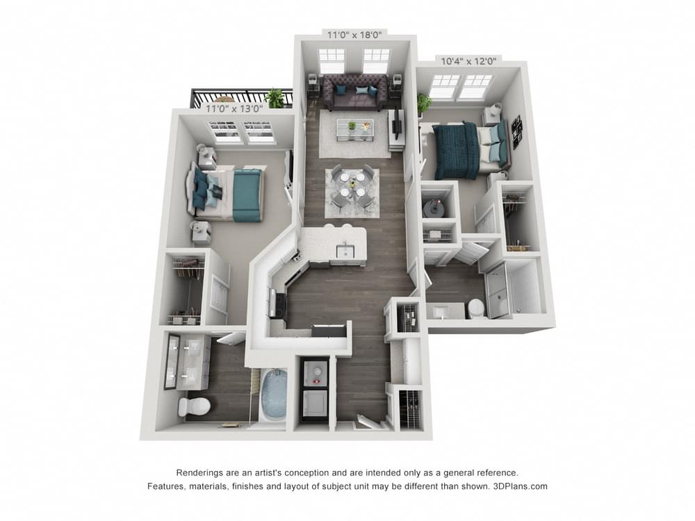 Unit Type2 Bed / 2 BathFloor Area1,032 sq. ft.AvailableTodayStarting at$1,700 / mo
